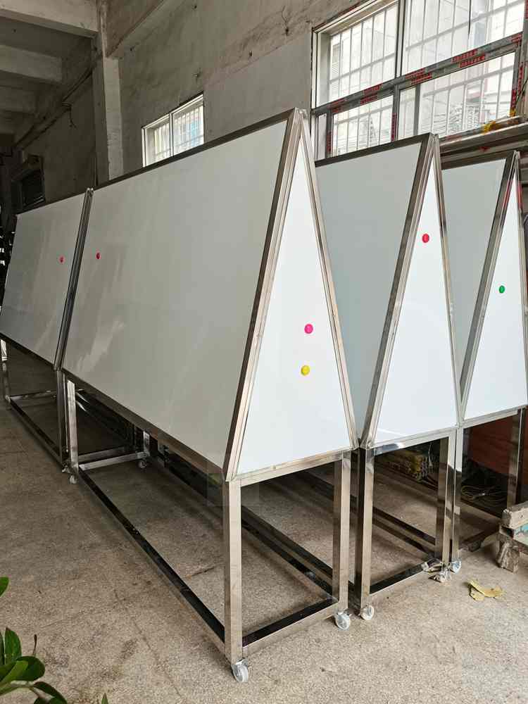 廠家訂制活動(dòng)不銹鋼架白板帶架多面白板架梯形白板架帶滑輪